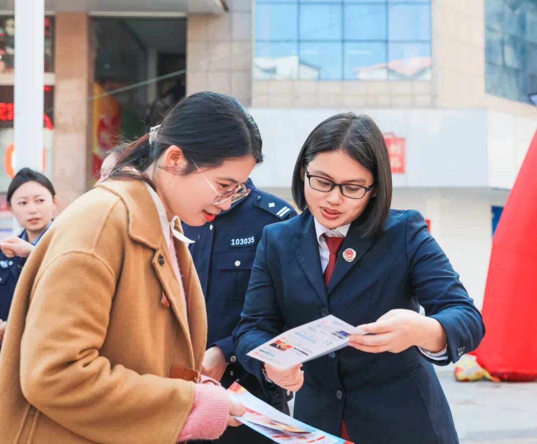 在汇金商业中心广场,检察官们摆放法律展板,设立法律咨询台,以妇女权益保护为切入点,用通俗易懂的语言向群众解读《中华人民共和国刑法》中关于妇女特殊保护的相关规定以及本院办理的涉妇女儿童权益保护司法救助典型案例。